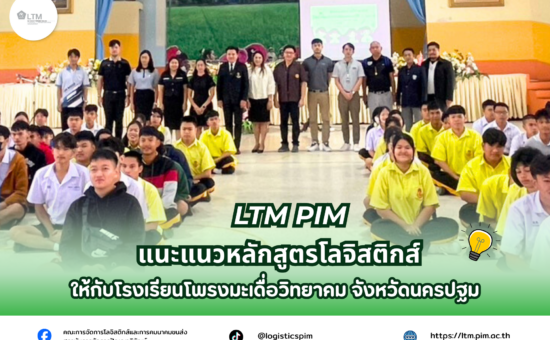 PIM พร้อมเปิด BIGBOX ใบใหญ่! อัดแน่นประสบการณ์ใหม่! เจาะภาคธุรกิจโลจิสติกส์และการคมนาคมขนส่ง หากน้องๆ มีเป้าหมายในการพัฒนาตนเอง ให้มีความพร้อมต่อการทำงานในภาคธุรกิจที่เร็วกว่าคนอื่นและมีทางเลือกที่มากกว่า ทางคณะการจัดการโลจิสติกส์และการคมนาคมขนส่งของพีไอเอ็ม พร้อมที่จะมอบทักษะในด้านการคิดคํานวณ ด้านการใช้ภาษา ด้านเทคโนโลยี ด้านการคิดวิเคราะห์ ความเป็นผู้นําและการปรับตัวให้เข้ากับสถานการณ์อยู่ตลอดเวลา เพื่อให้เกิดประโยชน์สูงสุด ตลอดจนเรียนรู้การเป็นผู้ประกอบการ การพัฒนาธุรกิจโลจิสติกส์ และการคมนาคมขนส่งเพื่อการพาณิชย์อิเล็กทรอนิกส์ (E-Commerce)